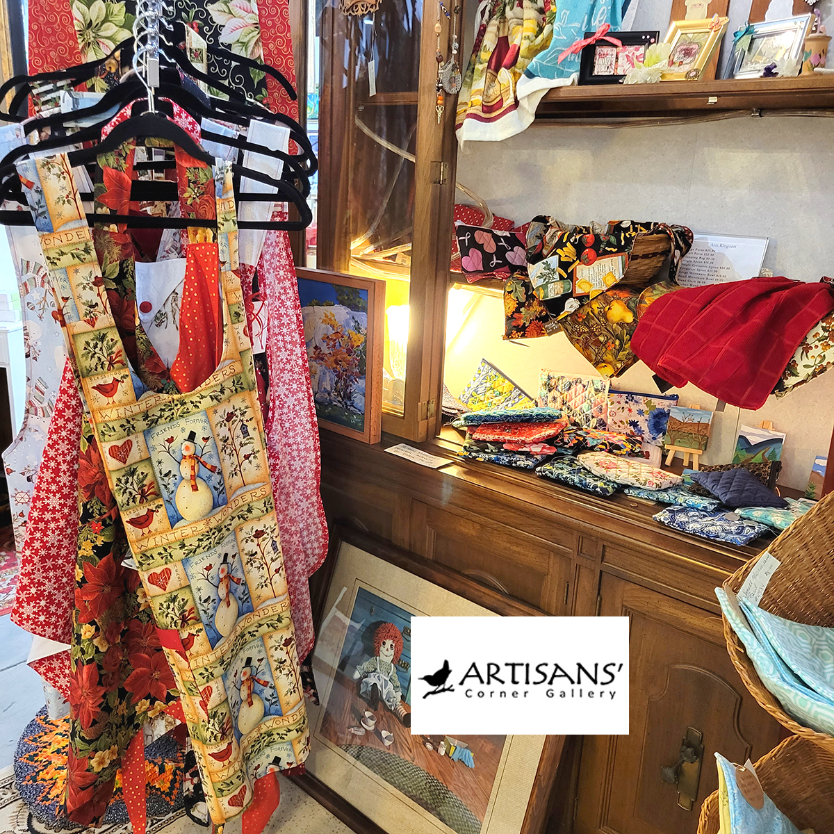 Always happy to receive donated fabric remnants and give them new life, Ann’s purses take on an original flair as no two are ever alike. Creating her pieces is like making a work of art, she takes plain materials and makes them into wonderful and useful things. Her favorite items to sew are purses. They have such personality and when they find a buyer, she is delighted to see them in daily use, being loved and cared for, not just set on a shelf. In addition to the purses, her aprons also bring her joy. She says if you wear one, folks will think your cooking is as good as Julia Childs. So find yours today! Many styles and sizes are available in our gallery.